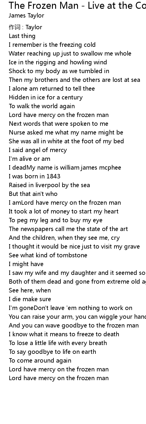 | Song | The Frozen Man - Live at the Colonial Theatre |
