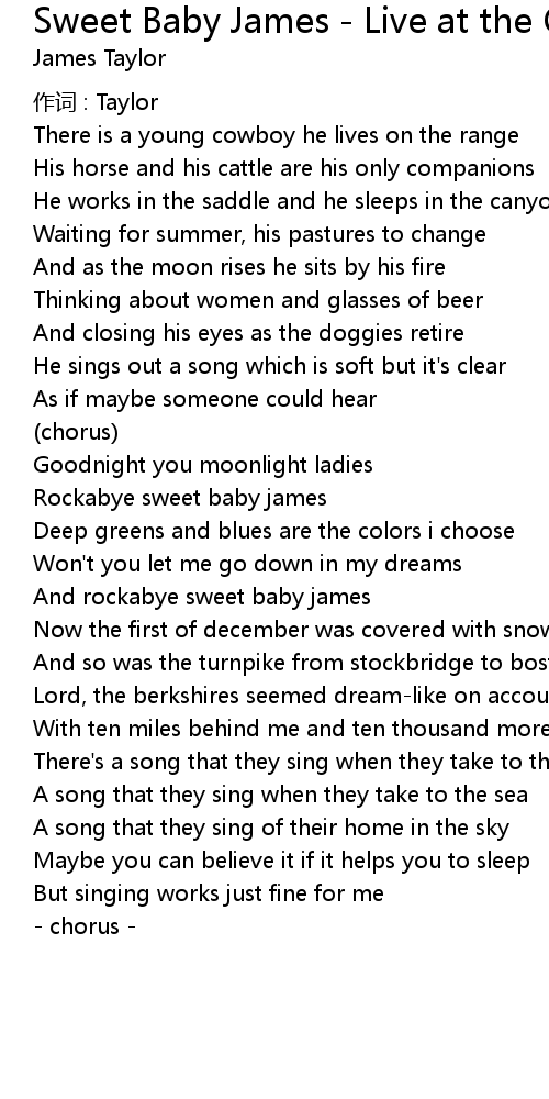 | Song | Sweet Baby James - Live at the Colonial Theatre |