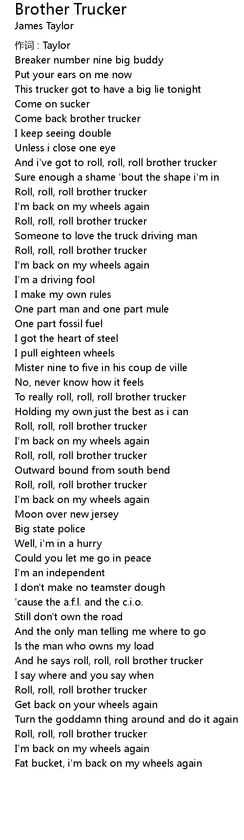 | And i've got to roll, roll, roll brother trucker | |