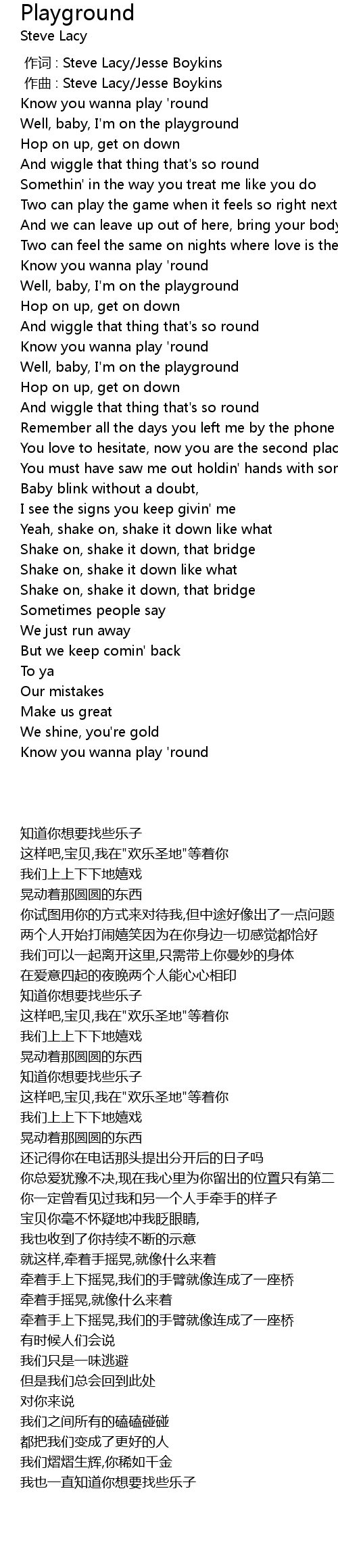 | [00:23.17] | Well, baby, I'm on the playground |