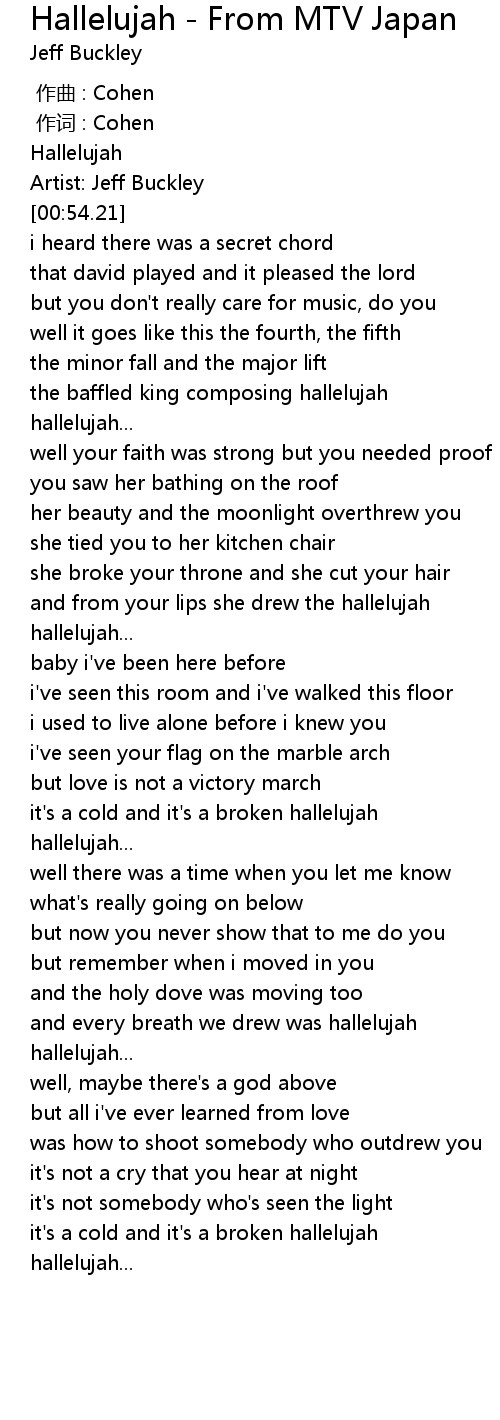| [05:22.07] | it's a cold and it's a broken hallelujah |