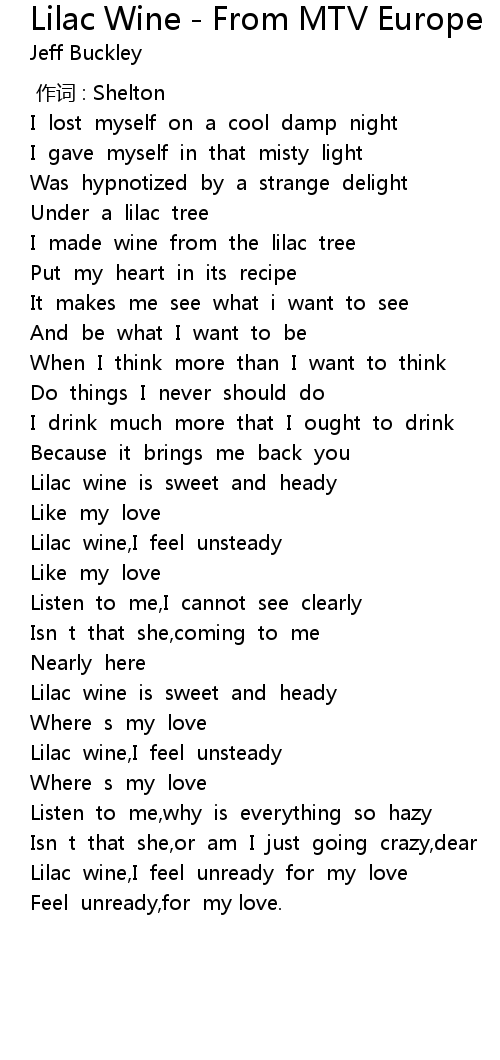 | [03:40.399] | Lilac wine, I feel unready for my love |