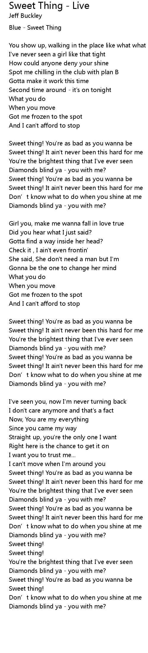 | Sweet thing! It ain' t never been this hard for me | |