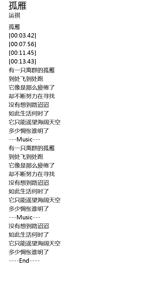| [00:17.10] | 有一只离群的孤雁 |