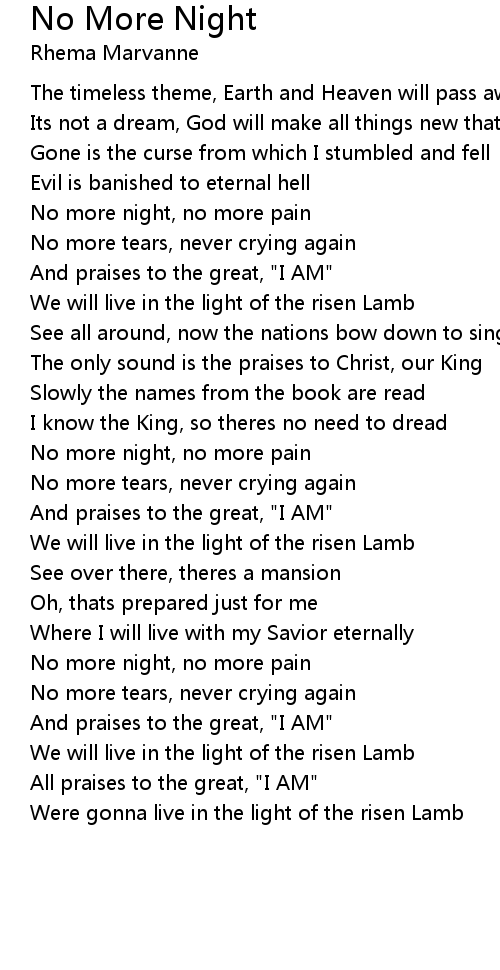 No more night, no more pain |