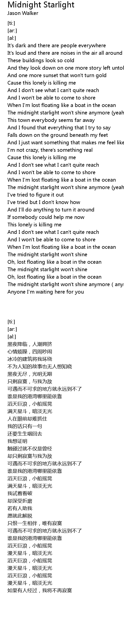 | [03:26.40] | The midnight starlight won' t shine |