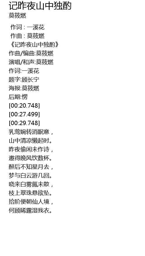 | [00:01.503] | 《记昨夜山中独酌》 |