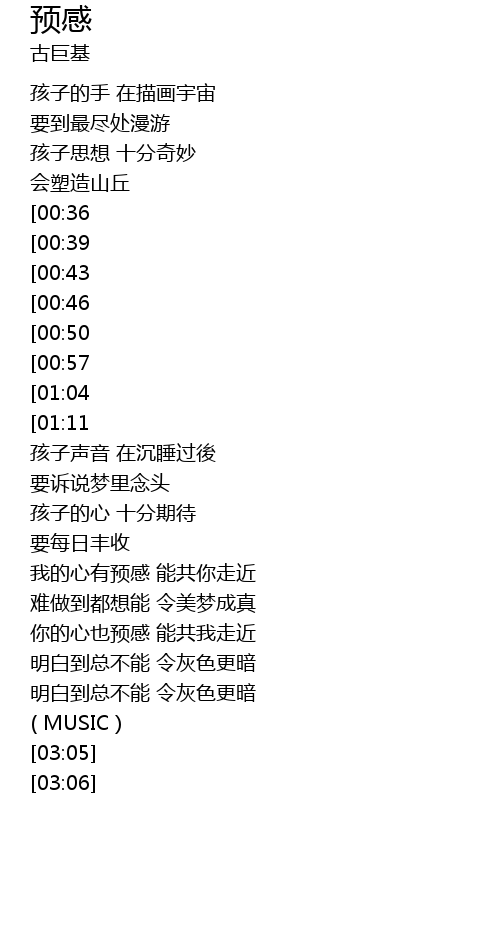 | [01:47][00:50] | 我的心有预感 能共你走近 |