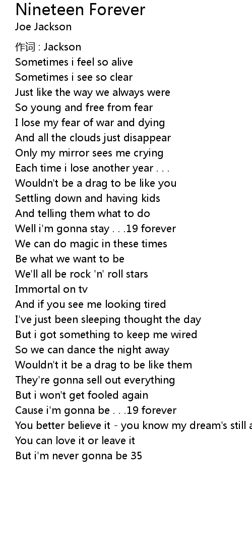 | Cause i' m gonna be . . . 19 forever | |