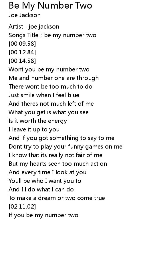 | [00:45.90] | Wont you be my number two |