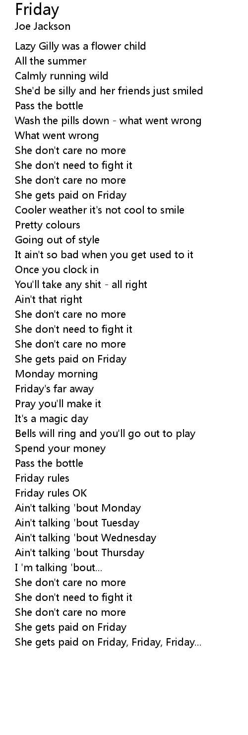 | She gets paid on Friday, Friday, Friday... |