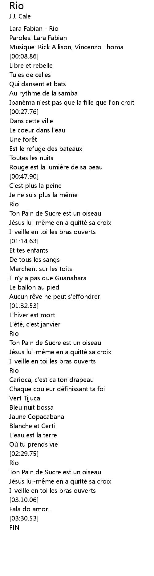 | [02:02.69] | Carioca, c' est ca ton drapeau |
