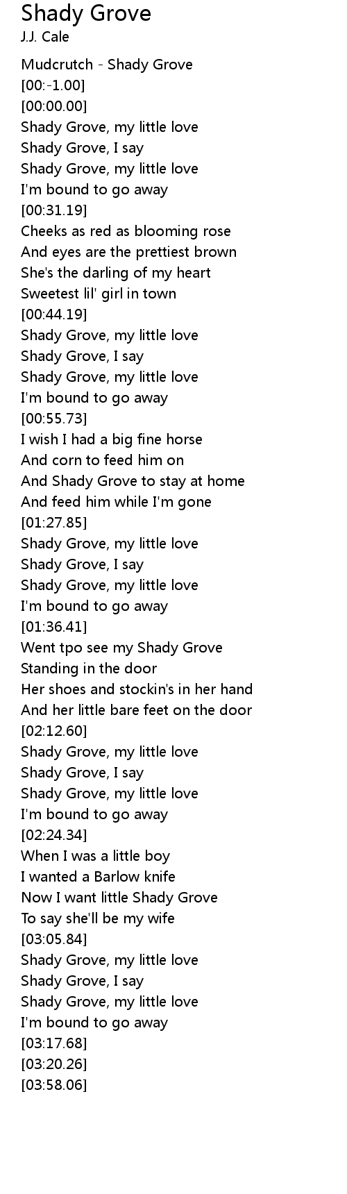 | [00:49.65] | Shady Grove, I say |