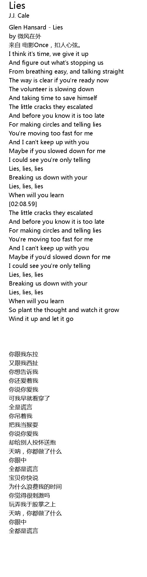| [00:00.18] | Glen Hansard Lies |
