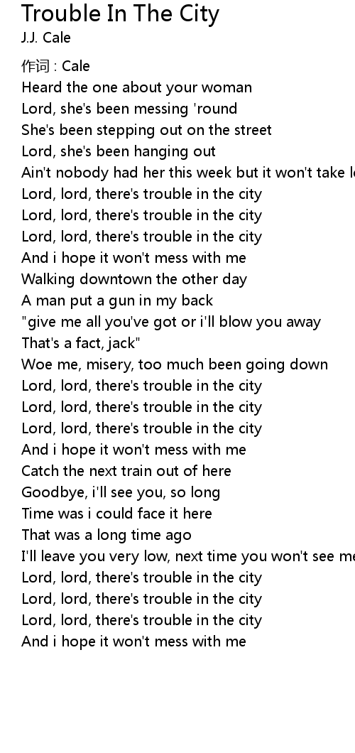 | Lord, lord, there' s trouble in the city | |