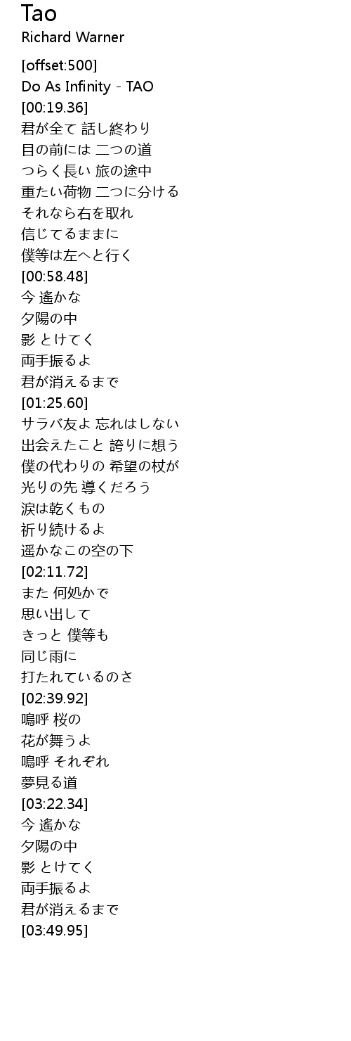 | [00:00.00] | Do As Infinity - TAO |