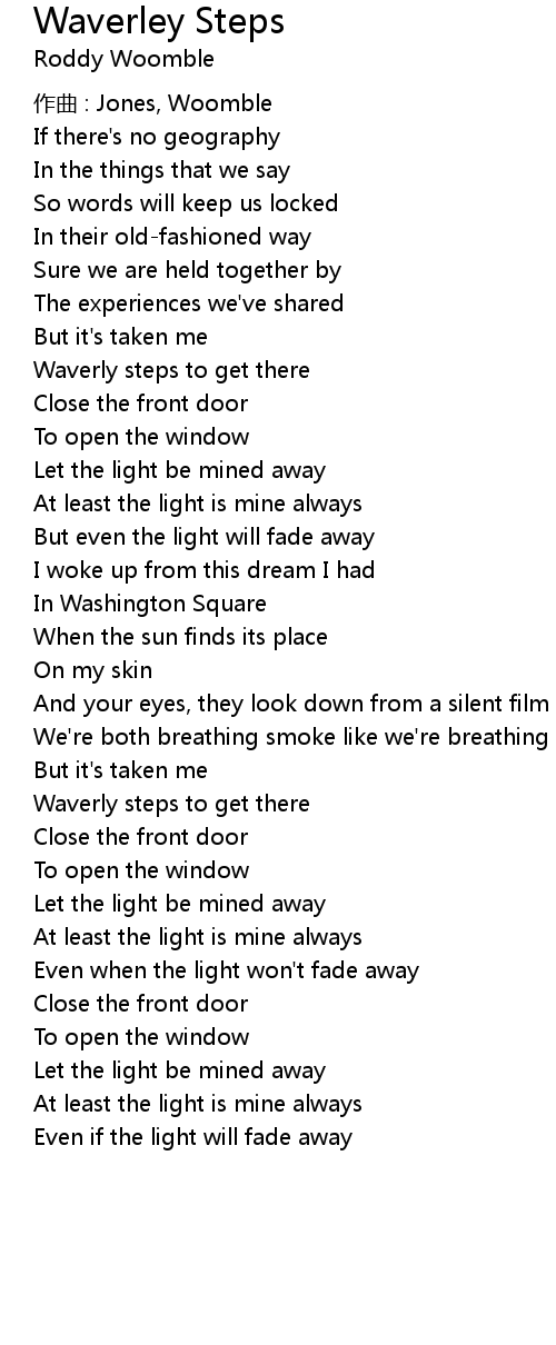 | Song | Waverley Steps |