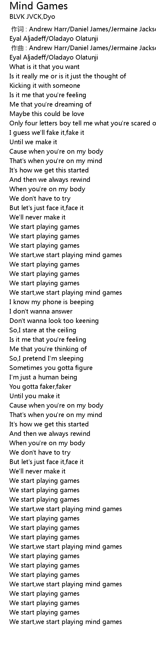| [03:02.72] | We start, we start playing mind games |