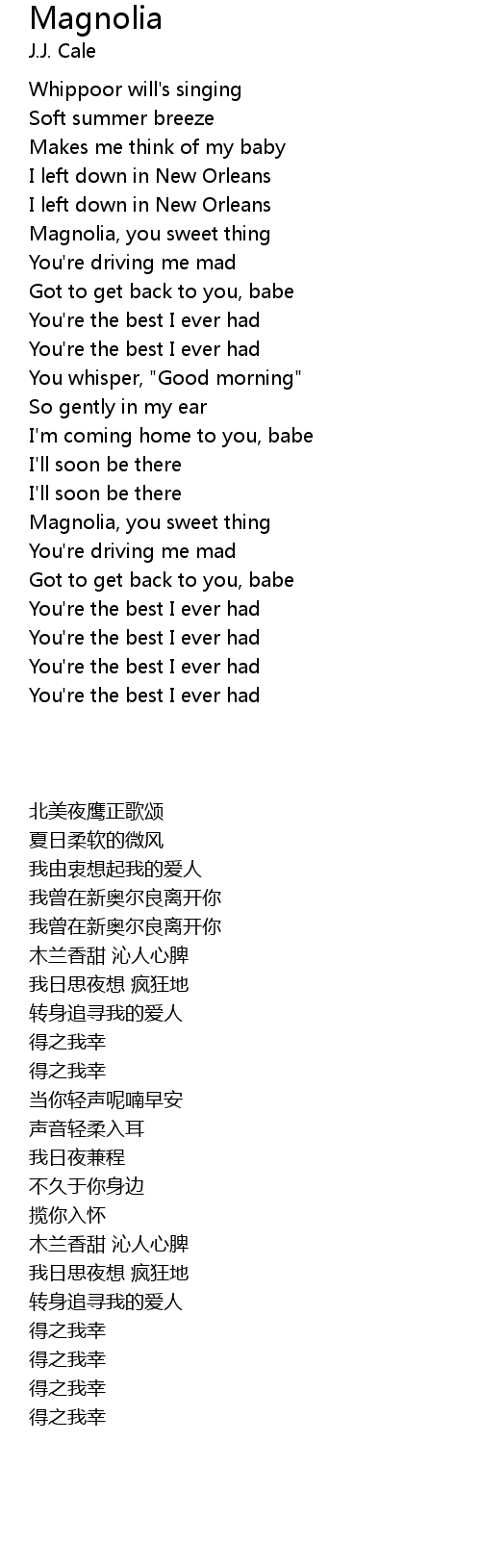 | [02:37.60] | Magnolia, you sweet thing |