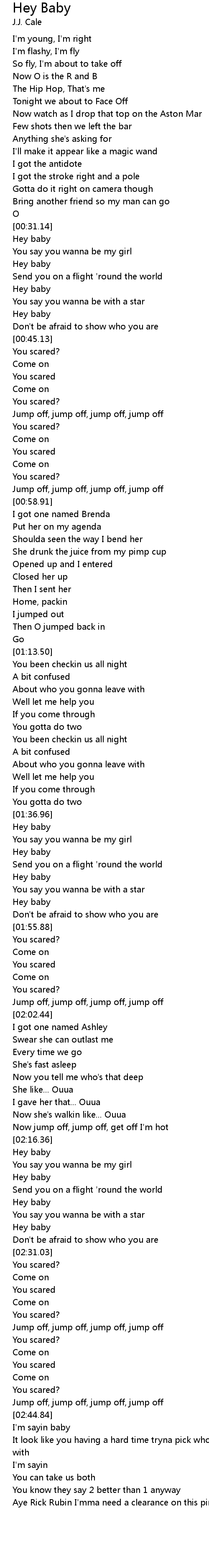 | [02:14.19] | Now jump off, jump off, get off I'm hot |