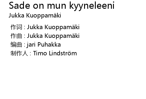 | [00:00.000] | 作词 : Jukka Kuoppamäki |