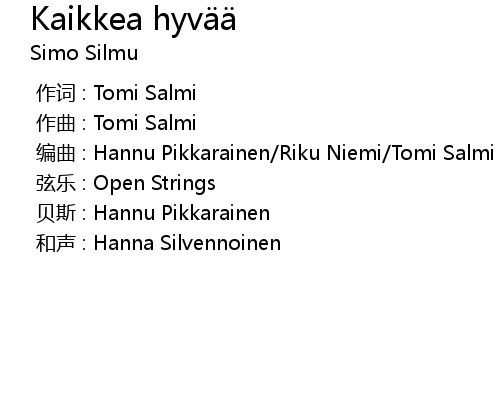 | [00:00.000] | 和声 : Hanna Silvennoinen |