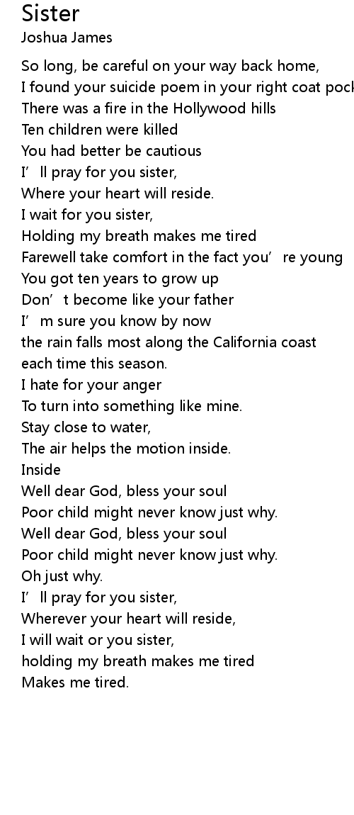 | I wait for you sister, | |