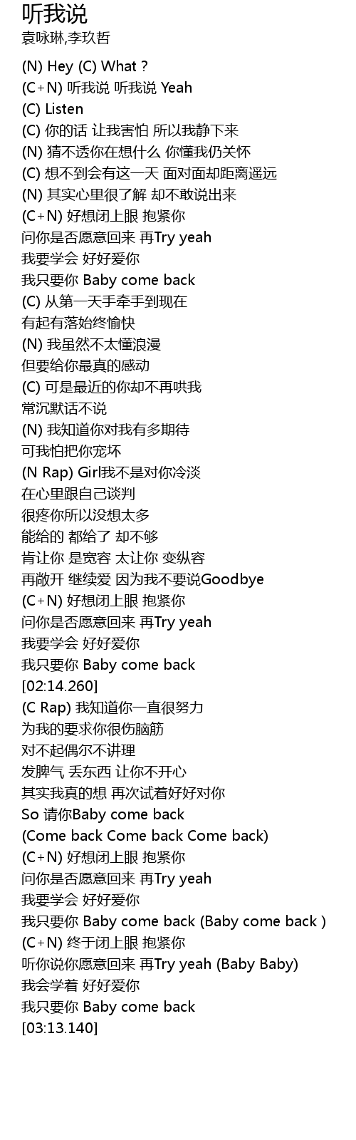 | [00:25.130] | C N tīng wǒ shuō tīng wǒ shuō Yeah |
