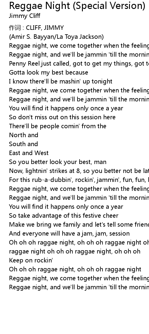 | Reggae night, and we'll be jammin 'till the morning light | |