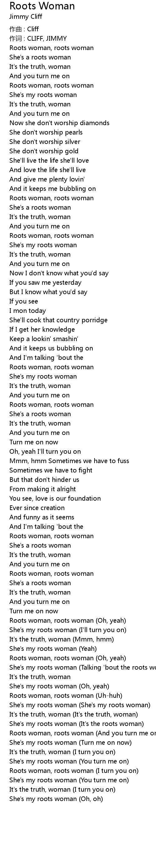 | She's my roots woman (Talking 'bout the roots woman, roots woman) | |