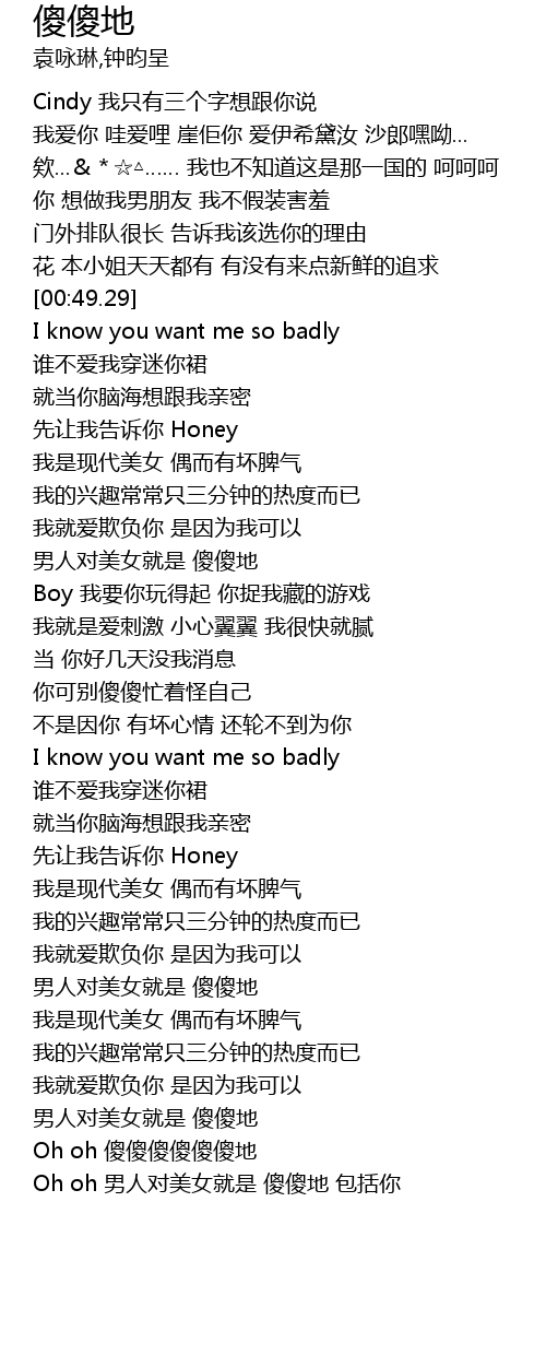 | [02:34.29] | Oh oh 傻傻傻傻傻傻地 |