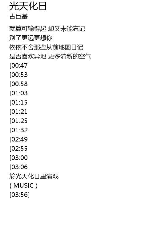 | [03:40][03:06][01:53] | yú guāng tiān huà rì lǐ yì qǐ |