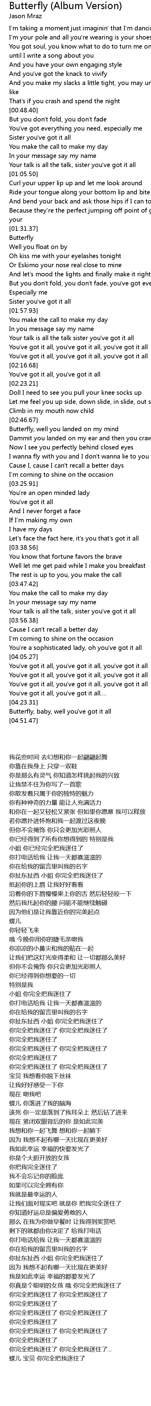 | [04:41.00] | Butterfly, baby, well you' ve got it all |