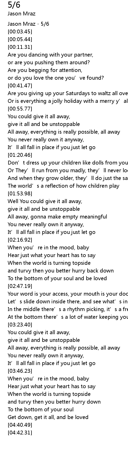 | [00:01.32] | Jason Mraz - 5/6 |