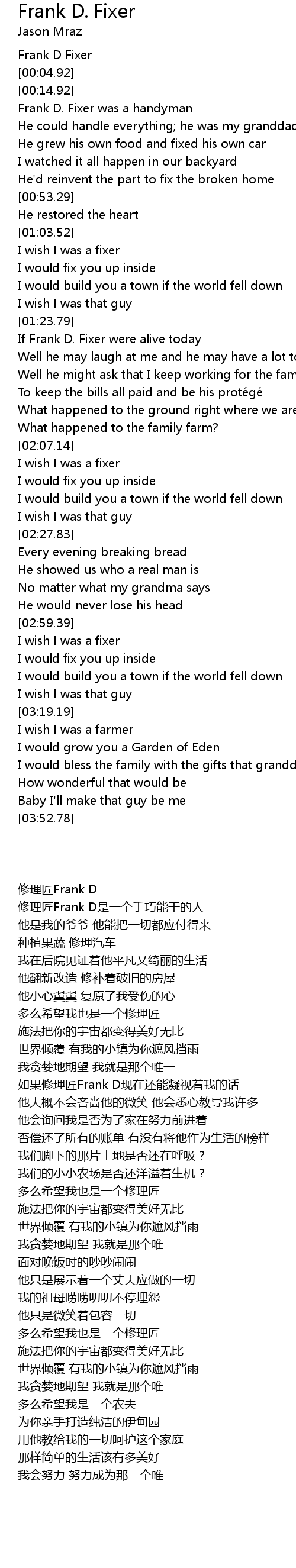 | [00:25.02] | Frank D. Fixer was a handyman |