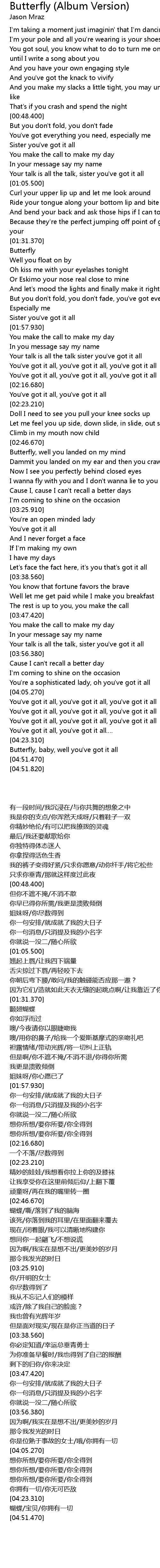 | [04:41.000] | Butterfly, baby, well you've got it all |