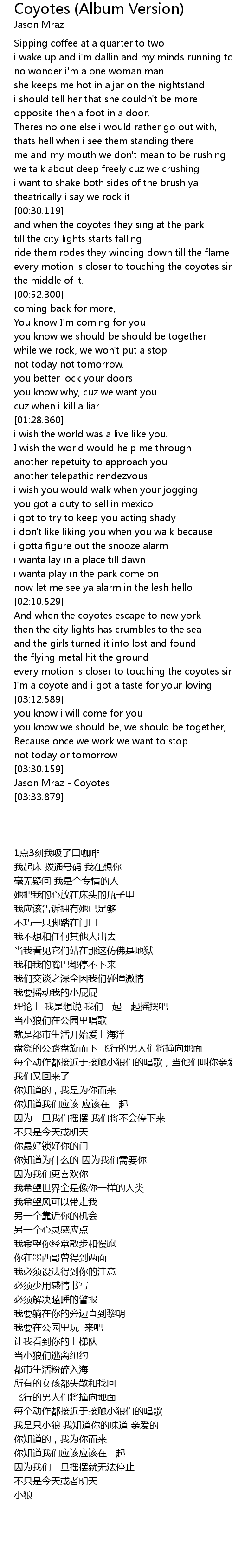 every motion is closer to touching the coyotes sing when they call in the middle of it. |