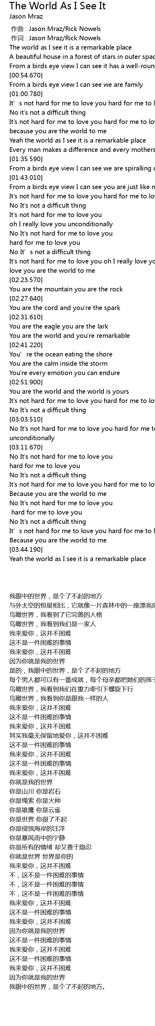 | [00:01.00] | 作词 : Jason Mraz/Rick Nowels |