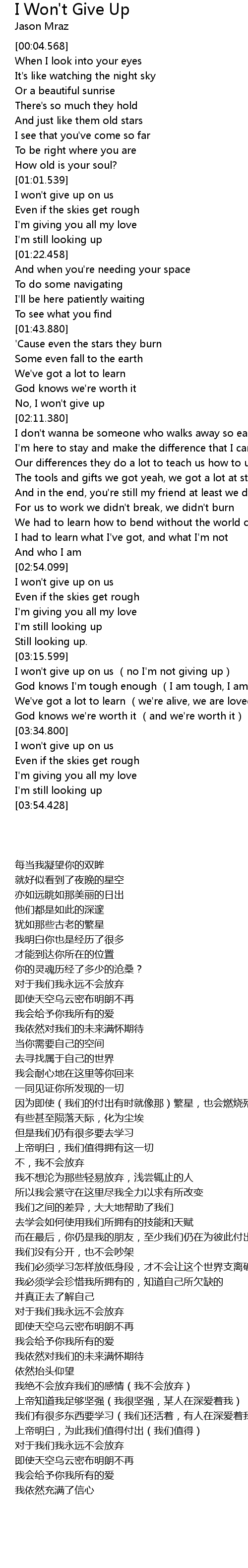 | [03:15.889] | I won' t give up on us no I' m not giving up |