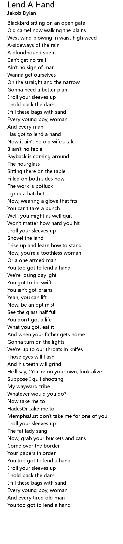 You too got to lend a hand |