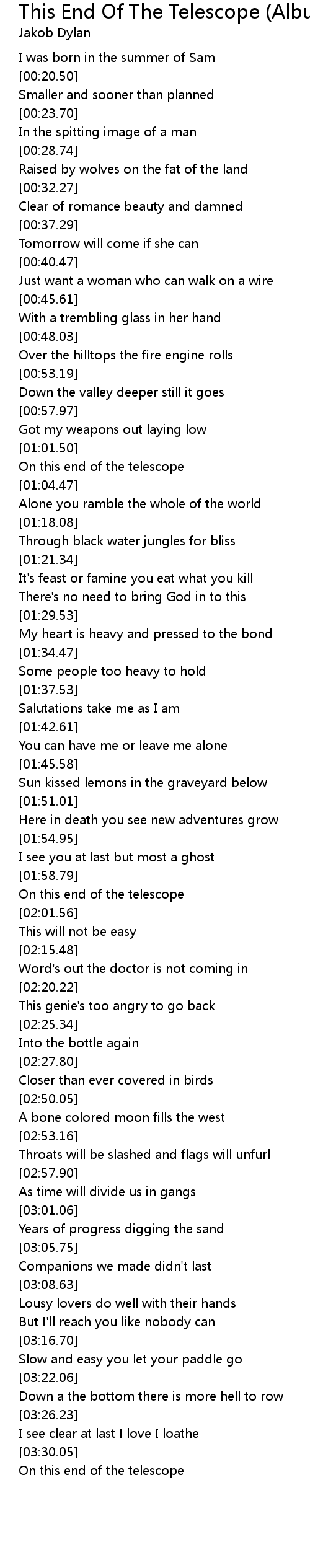 This End Of The Telescope (Album Version) Lyrics