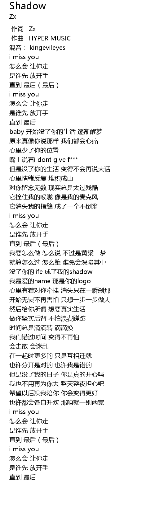 | [01:28.939] | 没了你的life 成了我的shadow |