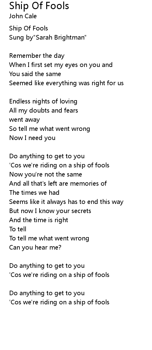 | 'Cos we're riding on a ship of fools | |