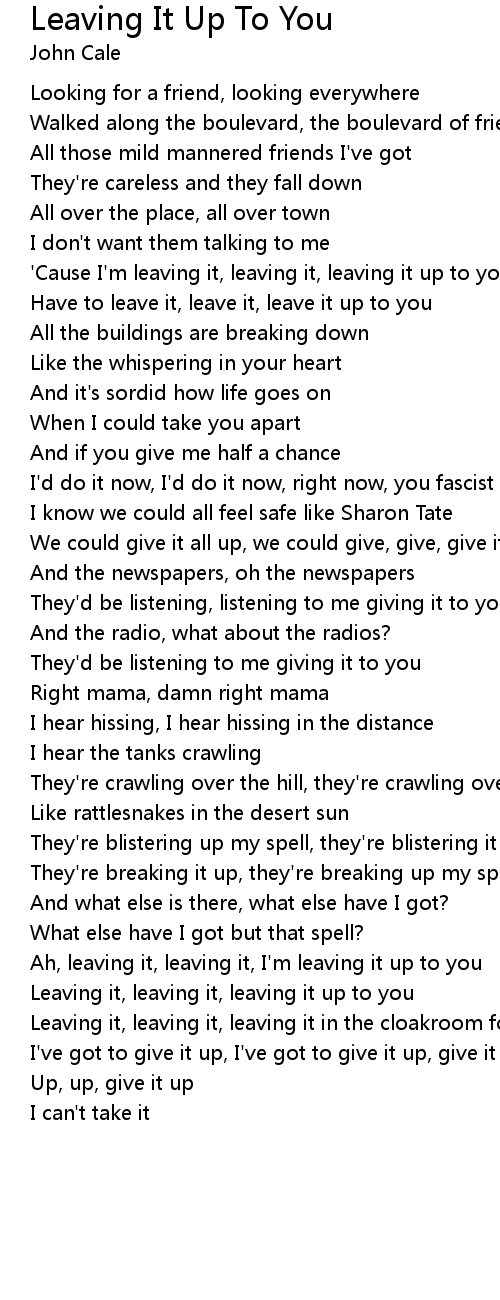 | Leaving it, leaving it, leaving it up to you | |