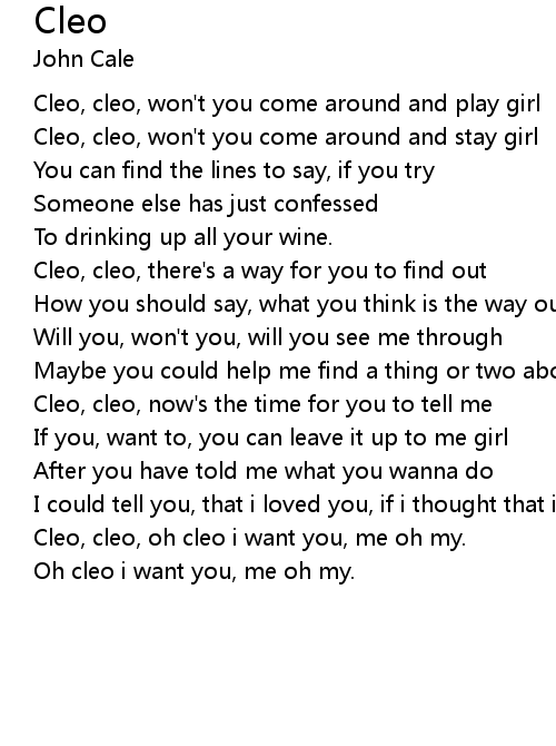 Cleo, cleo, oh cleo i want you, me oh my. |