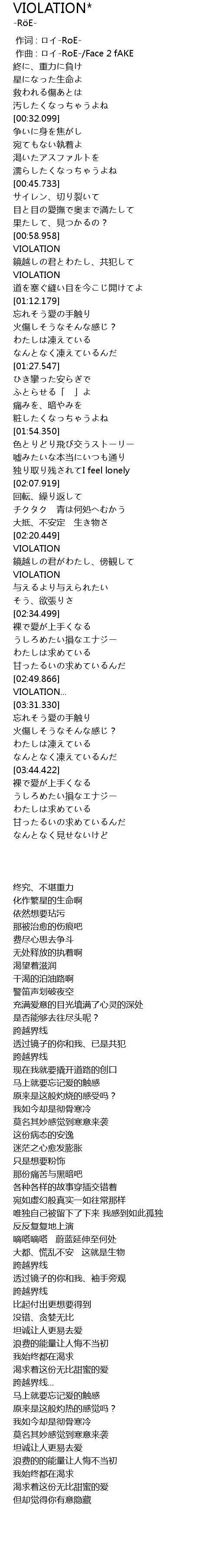 | [00:00.000] | 作词 : ロイ-RoE- |