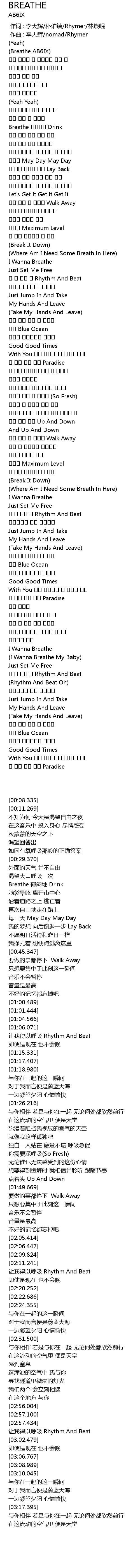 | [02:59.661] | 날 숨 쉬게 할 Rhythm And Beat |