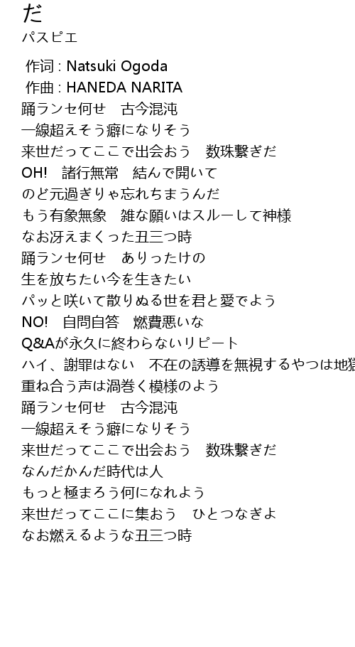 | [00:00.000] | 作词 : Natsuki Ogoda |