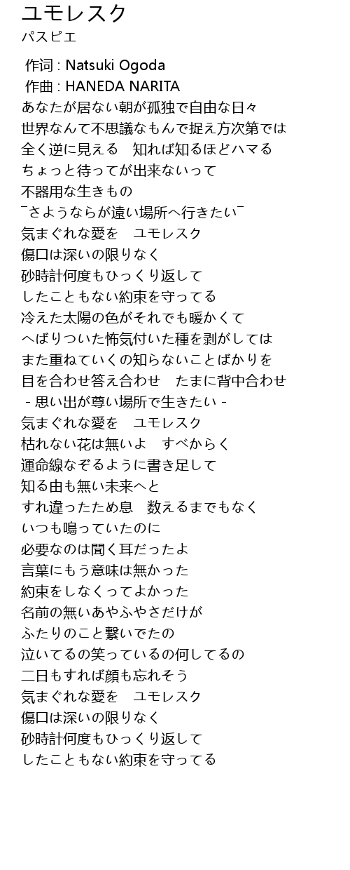 | [01:37.250] | 目を合わせ答え合わせ たまに背中合わせ |