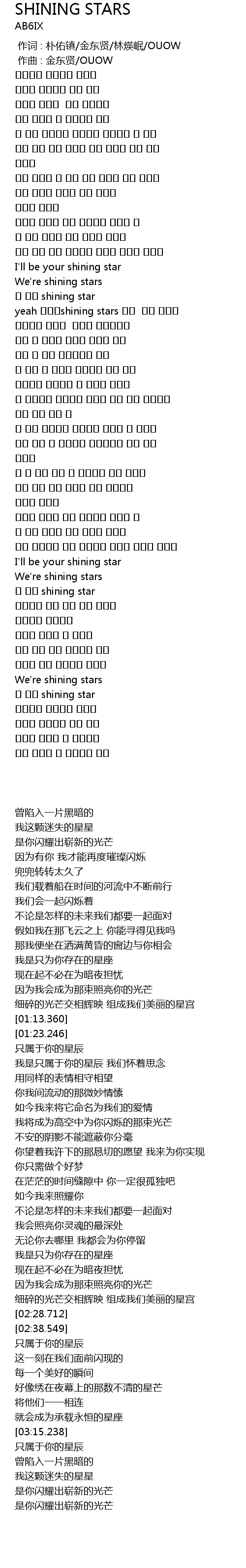 | [01:36.451] | yeah 너만의shining stars 우린 아주 비슷한 |